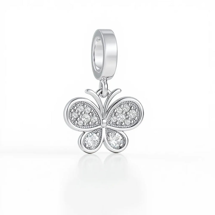 O berloque Borboleta Cravejada representa ciclos, liberdade e renascimentos sutis. Suas asas cravejadas com zircônias delicadas refletem luz e movimento — como a beleza de um momento passageiro que fica para sempre no coração. Uma joia para mulheres que vivem em constante evolução, com leveza, sensibilidade e coragem.