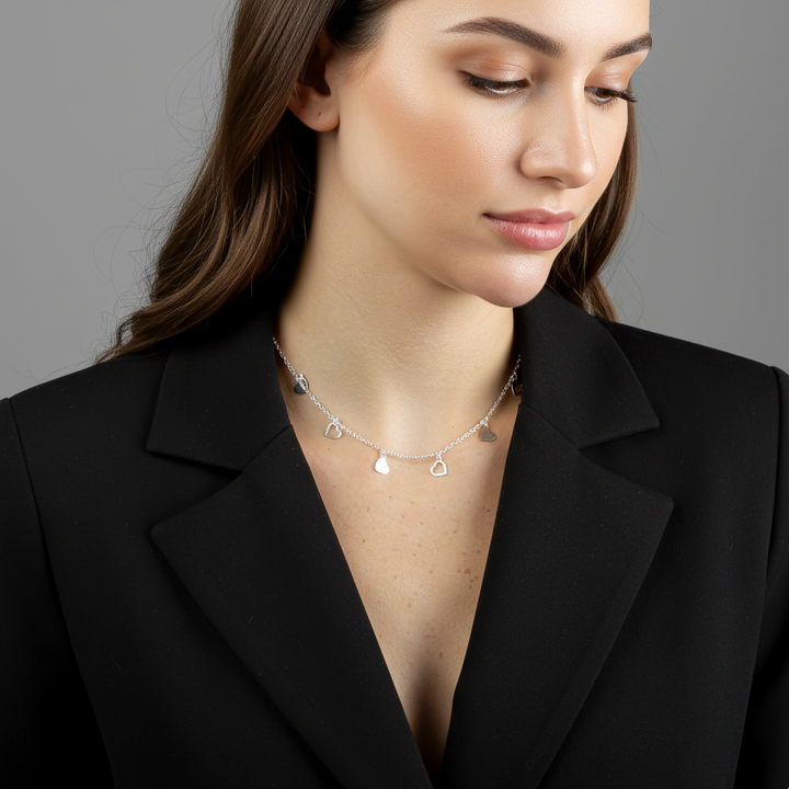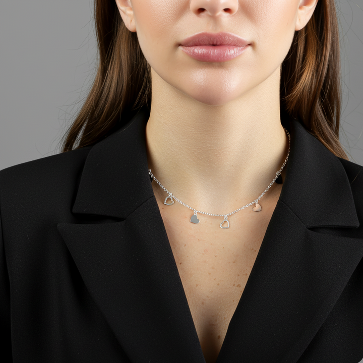 A Choker Corações Lisos Vazados AMARTY representa o amor em sua forma mais leve e sutil. Com delicados corações vazados e acabamento em prata 925, essa joia envolve o pescoço com simbolismo e presença. Ideal para quem deseja expressar seus afetos sem excessos — com estilo, sofisticação e liberdade de ser quem é.