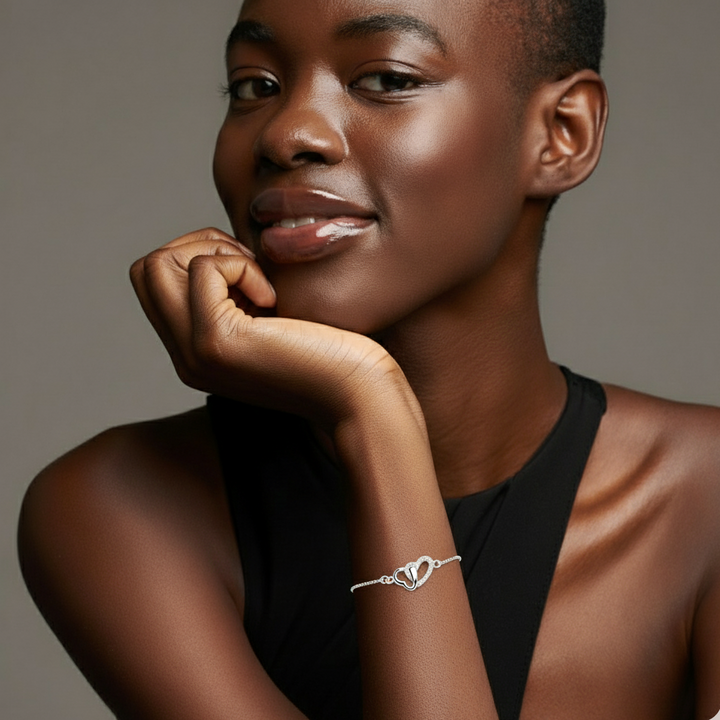 Entrelaçados por afeto e brilho, essa pulseira representa laços que se fortalecem com o tempo.