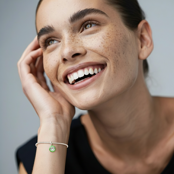 O Ritual Brinde ao Agora une a atitude icônica do Berloque Tampa à sofisticação da Pulseira de Prata base. [cite_start]Este conjunto em Prata 925 transforma um símbolo cotidiano em um amuleto de celebração[cite: 257, 260]. Ele representa o prazer da autoindulgência, as risadas sinceras e a conquista da sua própria liberdade. É para a mulher que sabe que a vida acontece no presente e escolhe brindar a si mesma todos os dias.