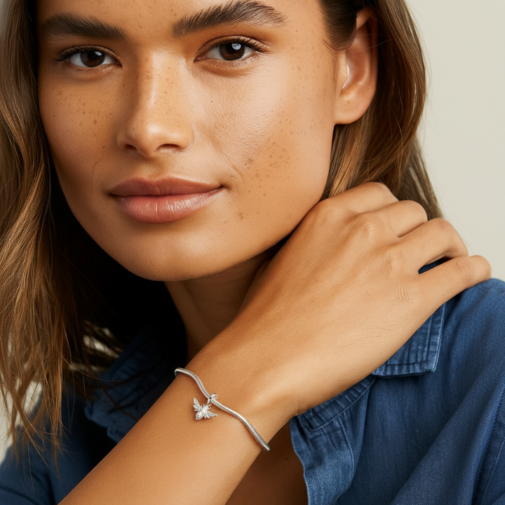 O Ritual Instinto Real une o brilho sofisticado do Berloque Abelha Cravejada à solidez da Pulseira de Prata base. A abelha não é apenas uma operária, é uma rainha: símbolo de organização, prosperidade e da sabedoria de transformar o pólen da vida em mel. Este conjunto em Prata 925 é um amuleto para a mulher que confia em seu instinto, constrói seu legado com elegância e floresce em qualquer estação.